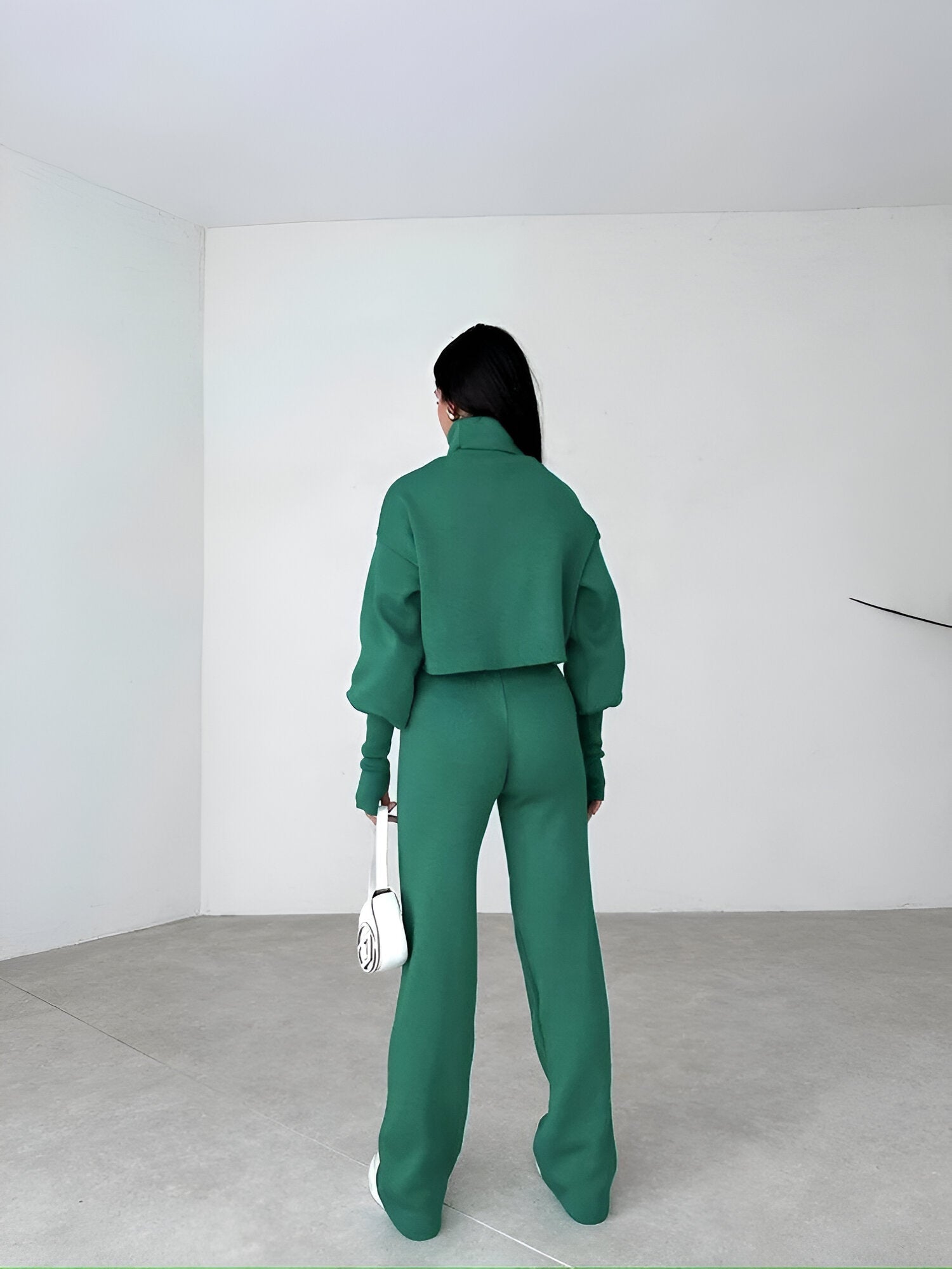 Featuring relaxed trousers and a matching high-neck top, this set combines warmth with effortless style. Whether you're relaxing at home or on the go, you'll feel warm and look stylish in any breeze.